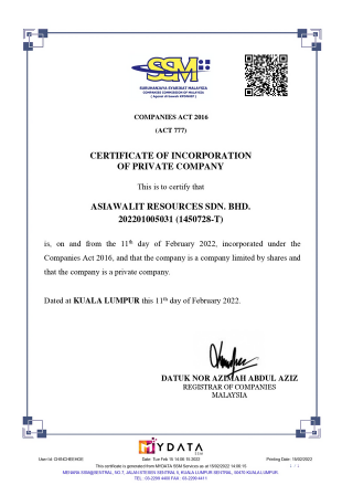 马来西亚 公司注册证